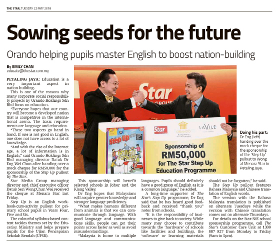 SOWING SEEDS FOR THE FUTURE Post author:admin Post published:May 22, 2018 Post category:Corporate Social Responsibility / News Post comments:0 Comments SPONSORSHIP OF RM50,000 FOR THE STAR STEP UP EDUCATION PROGRAMME FOR SCHOOLS 2018 You Might Also Like A STEP CLOSER TO NEW AUDITORIUM July 1, 2017 Cheque Presentation Ceremony of Fund-Raising for the Malaysia-China Youth Exchange Programme July 28, 2022 HOW TO EMBRACE THE SPRING OF SMES? June 22, 2024 Leave a Reply Cancel replyCommentEnter your name or username to comment Enter your email address to comment Enter your website URL (optional) Save my name, email, and website in this browser for the next time I comment.