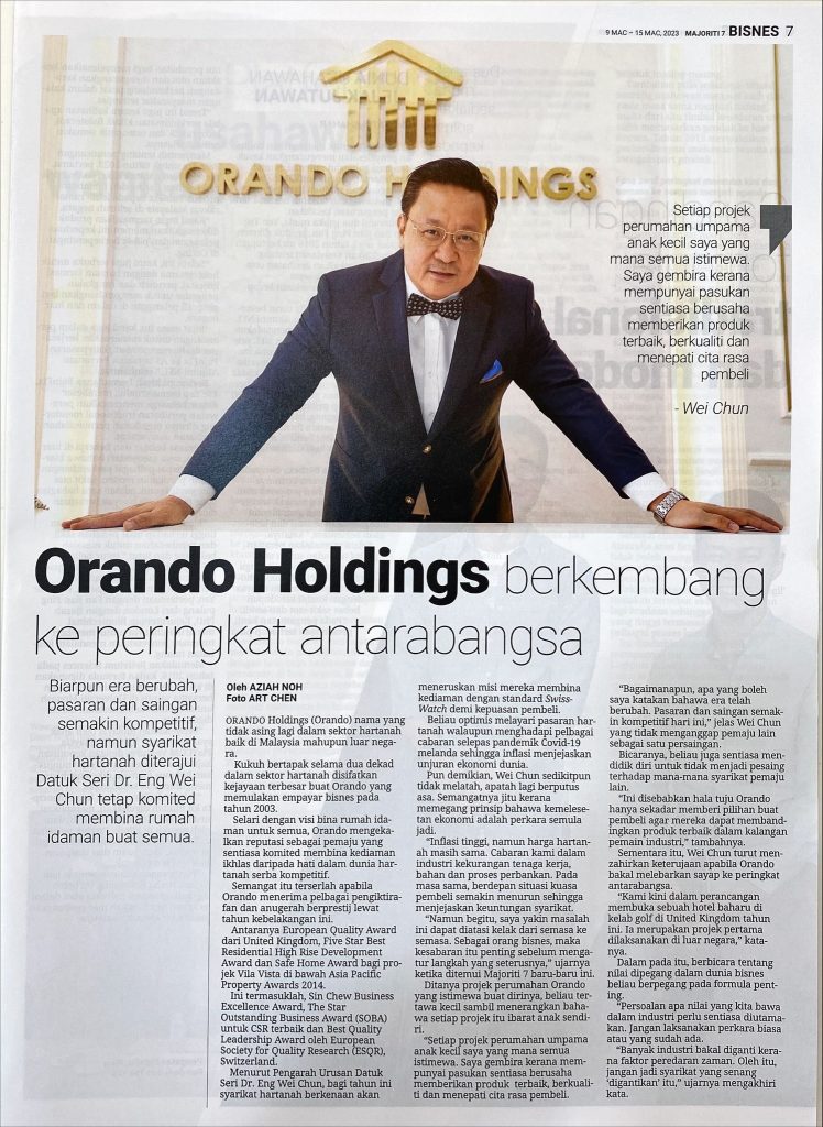 Orando Holdings expands to international level Post author:admin Post published:March 15, 2023 Post category:Media Limelight / News Post comments:0 Comments Tags: Majority 7 You Might Also Like SOWING SEEDS FOR THE FUTURE May 22, 2018 CREATIVE CAPTURE OF PATRIOTIC August 28, 2017 Orando Vista Lavender 获亚太房地产大奖 May 30, 2025 Leave a Reply Cancel replyCommentEnter your name or username to comment Enter your email address to comment Enter your website URL (optional) Save my name, email, and website in this browser for the next time I comment.