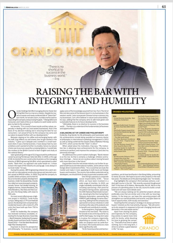 Raising The Bar With Integrity And Humility Post author:admin Post published:March 20, 2023 Post category:Media Limelight / News Post comments:0 Comments Tags: The Edge Read more articles Previous PostOrando to launch last tower of Lavile KL on Oct 10 You Might Also Like KENAPA MALAYSIA PERLU LEBIH BANYAK FDI? November 26, 2017 DISPELLING THE FOG OF NEGATIVE RHETORIC February 24, 2024 WEAK NATIONS HAVE NO ALLIES, PERSEVERANCE IS ETERNAL March 22, 2025 Leave a Reply Cancel replyCommentEnter your name or username to comment Enter your email address to comment Enter your website URL (optional) Save my name, email, and website in this browser for the next time I comment.