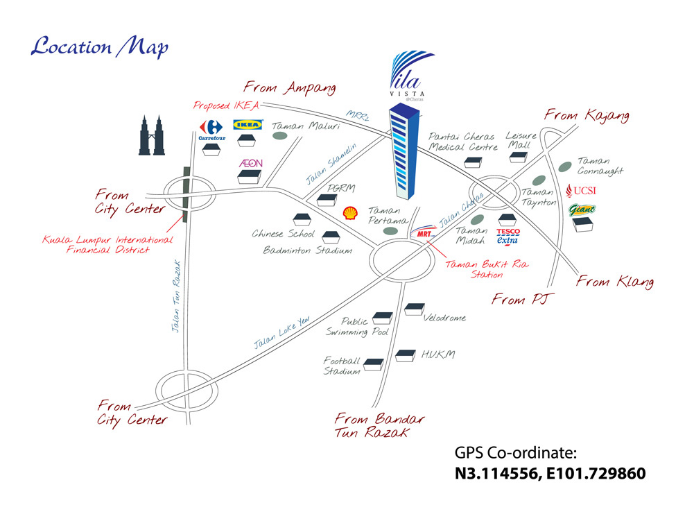 You and your loved ones will become part of a brand new landmark in Cheras as Vila Vista reaches 39 stories into the sky, making it the tallest residence in the area. With 6 distinct floor plans to choose from, your desires will be realized no matter which address you opt for. Rest assured, this is truly a place where life can be savored. The project was launched in May 2013 and is expected to be completed by the second quarter of 2016.